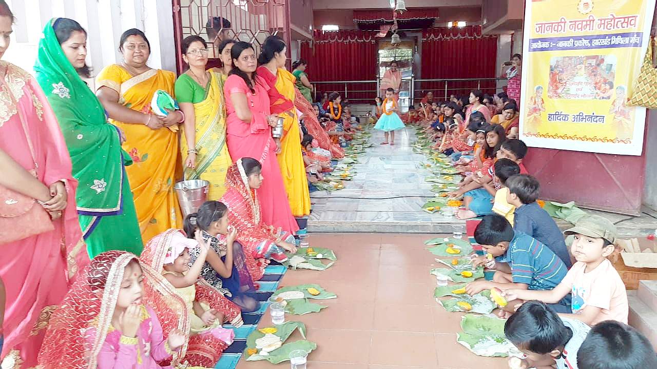 लंबे समय से यह संगठन मिथिलांचल के पारंपरिक पर्व-त्योहारों के साथ-साथ कई सांस्कृतिक व सामाजिक आयोजनों के जरिए मिथिला परंपरा को जीवित बनाए रखने के साथ-साथ आज की नई पीढ़ी को अपनी संस्कृति से जुड़े रहने की सीख दे रहा है। इसी कड़ी में बीते दिनों हरमू की हाईकोर्ट कॉलोनी स्थित दुर्गा मंदिर में जानकी नवमी महोत्सव का आयोजन किया गया। इस अवसर पर बड़ी संख्या में कुंवारी कन्याएं पूजी गयीं। कुंवारी कन्याओं का यह भव्य समागम अपने-आप में आकर्षक बना रहा। ऐसा लग रहा था मानो छोटी-छोटी कन्याओं के रूप में मां भगवती स्वयं अवतरित हो गयी हों। कुंवारी कन्याओं को पैर-हाथ धुलाकर अलता, टिकुली, काजल आदि से वैष्णो रूप में उन्हें सजाया गया। फिर चुनरी और पुष्पा माला पहनाई गई। पूजन से पहले आदिशक्ति मां दुर्गा को मिथिला परंपरा के अनुसार पातरि दिया गया, जिसमें प्रसाद के रूप में पायस, पंच मिष्ठान, पांच तरह के फल कमल के पत्ते पर भोग लगाए गए।