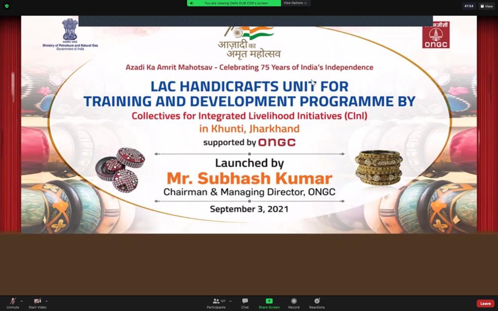 निदेशक (एचआर) डॉ अलका मित्तल ने कहा कि आदिवासी क्षेत्रों में हस्तशिल्प उद्योग से जुड़ने से संतुष्टि की भावना पैदा होती है और देश की अर्थव्यवस्था के लिए निर्यात के माध्यम से भी राजस्व उत्पन्न करने का एक सशक्त उपाय है। ओएनजीसी के निदेशक (तटवर्ती) अनुराग शर्मा ने दोहराया कि ओएनजीसी की इस तरह की पहल से कला और शिल्प का समग्र विकास होगा और व्यक्तिगत कारीगरों, गांवों और परिणामस्वरूप पूरे देश की जीवन शैली में भी। श्री शर्मा ने उल्लेख किया कि खूंटी में ओएनजीसी की चौथी हस्तशिल्प परियोजना का उद्देश्य छह प्रशिक्षित मास्टर प्रशिक्षकों और 25 प्रशिक्षु कारीगरों के साथ हस्तशिल्प इकाई स्थापित करना है, जिनमें ज्यादातर महिलाएं हैं।