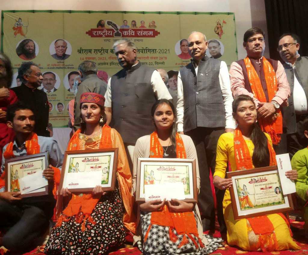 महाराजा अग्रसेन इंस्टीट्यूट, रोहिणी के भव्य ऑडिटोरियम में आयोजित ‘श्रीराम राष्ट्रीय काव्यपाठ प्रतियोगिता’ का फाइनल गणमान्य अतिथियों व ख्यातिप्राप्त कवियों की उपस्थिति में संपन्न हुआ। मुख्य अतिथि स्वामी चिदानंद सरस्वती (परमाध्यक्ष, परमार्थ निकेतन, ऋषिकेश), विशिष्ट अतिथि डॉ नंदकिशोर गर्ग (कुलाधिपति, महाराजा अग्रसेन विश्वविद्यालय, हिमाचल), विनीत गुप्ता (अध्यक्ष, महाराजा अग्रसेन टेक्निकल एजुकेशन सोसाइटी), जगदीश मित्तल (अध्यक्ष, राष्ट्रीय कवि संगम), बाबा सत्यनारायण मौर्य (संरक्षक, राष्ट्रीय कवि संगम) सहित ख्याति प्राप्त कवि डॉ अशोक बत्रा, प्रवीण शुक्ल, संदीप द्विवेदी, दिनेश देवघरिया, महेश शर्मा, योगेंद्र शर्मा, पी के आजाद आदि की गरिमामयी उपस्थिति रही। बता दें कि अक्षिता बोकारो के वरीय पत्रकार और सुप्रसिद्ध कलाकर व साहित्यकार अरुण पाठक व जयंती पाठक की सुपुत्री है।
