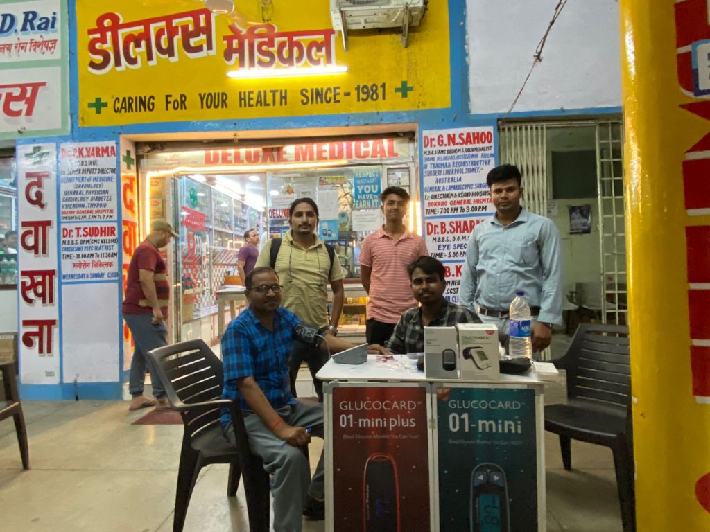 डीलक्स मेडिकल ने लगाया मुफ्त बीपी व शुगर जांच शिविर