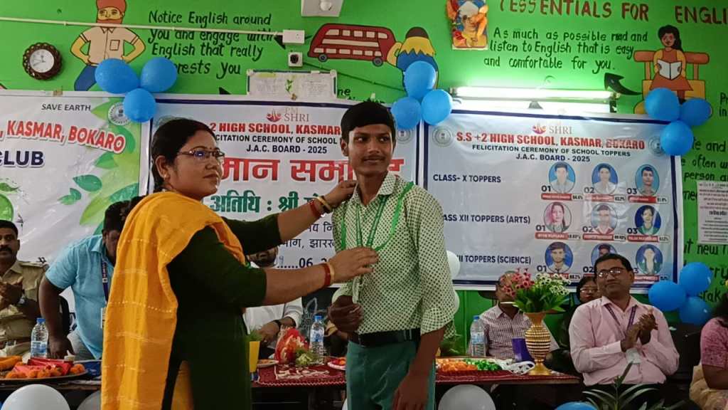 बोकारो ः पीएम श्री एसएस +2 उच्च विद्यालय कसमार में गुरुवार को सम्मान समारोह आयोजित किया गया, जिसमें विद्यालय प्रशासन ने झारखंड अधिविद्य परिषद, रांची द्वारा आयोजित 2025 की वार्षिक माध्यमिक एवं इंटरमीडिएट परीक्षा में विद्यालय के प्रथम दस स्थानों पर काबिज उत्कृष्ट छात्र-छात्राओं को सम्मानित किया।