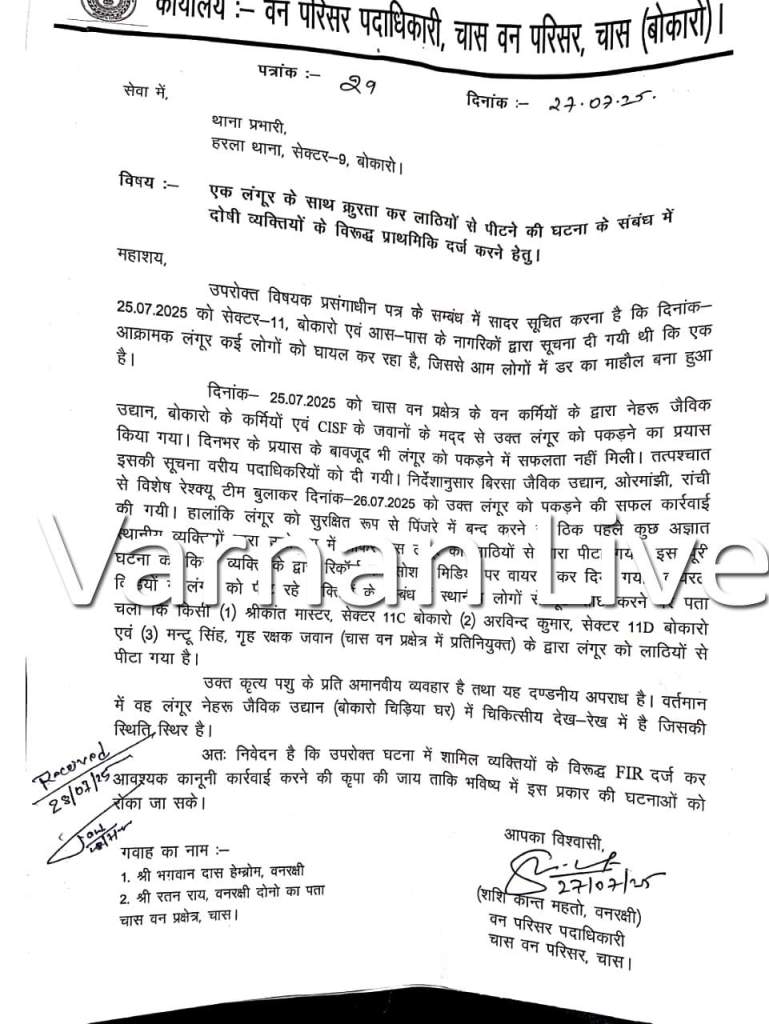 दर्ज प्राथमिकी के अनुसार, 25.07.2025 को चास वन प्रक्षेत्र के वन कर्मियों ने नेहरू जैविक उद्यान, बोकारो के कर्मियों और सीआईएसएफ के जवानों की मदद से लंगूर को पकड़ने का प्रयास किया, लेकिन दिनभर सफलता नहीं मिली। वरीय पदाधिकारियों के निर्देश पर रांची से बिरसा जैविक उद्यान, ओरमांझी की विशेष रेस्क्यू टीम बुलाई गई, जिसने 26.07.2025 को लंगूर को सफलतापूर्वक पकड़ लिया। हालांकि, लंगूर को सुरक्षित रूप से पिंजरे में बंद करने से ठीक पहले, कुछ अज्ञात स्थानीय व्यक्तियों ने उत्तेजना में आकर लंगूर को लाठियों से बेदर्दी से पीटा। इस पूरी घटना को किसी व्यक्ति ने रिकॉर्ड कर सोशल मीडिया पर वायरल कर दिया, जिससे एफआईआर में नामित तीनों व्यक्तियों की पहचान हुई।